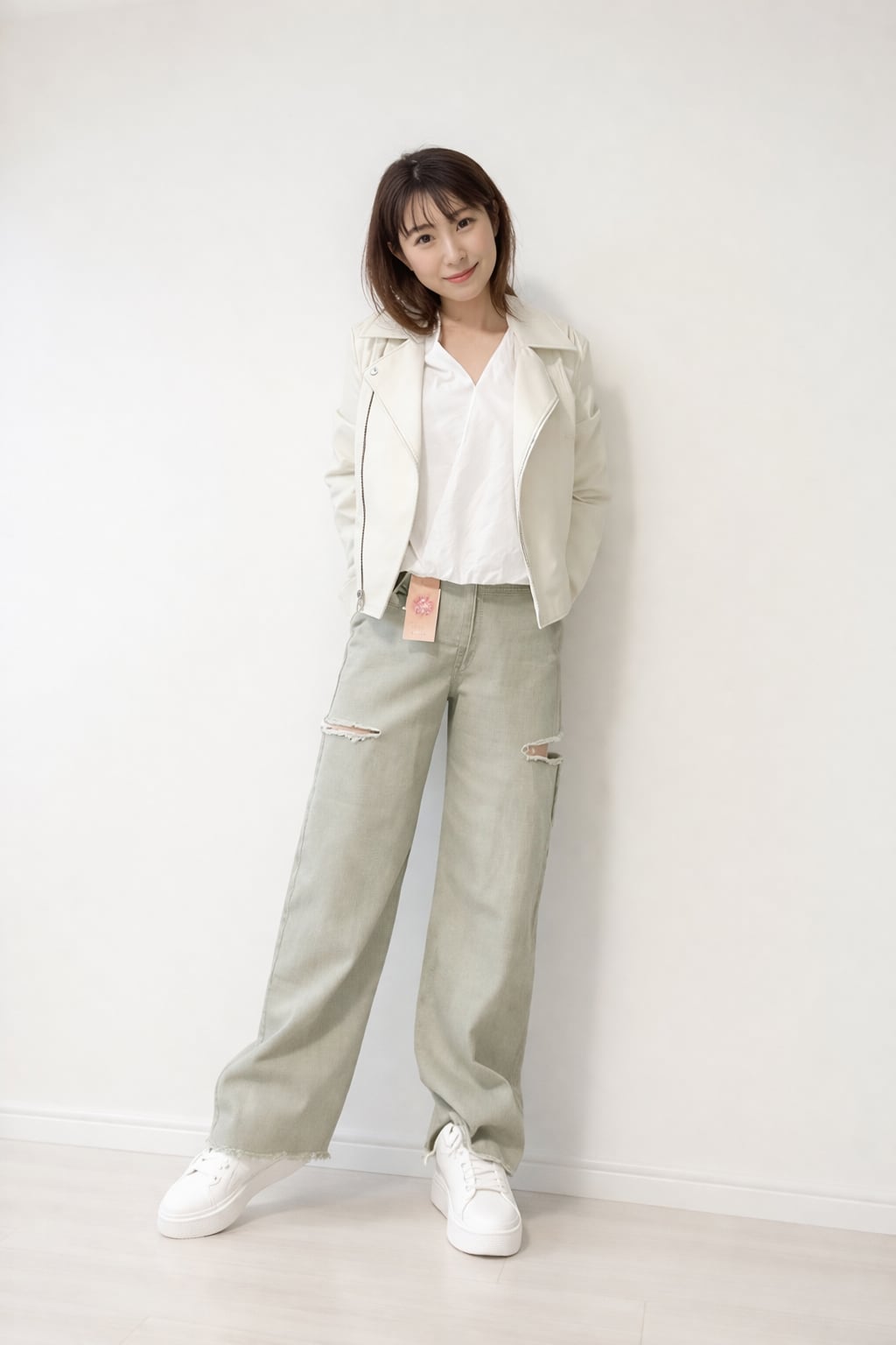 低身長コーデ / 150cmコーデ / 春コーデ / 大人カジュアル / 韓国ファッション / ストレートパンツ / ハイウエストパンツ / 脚長効果 / 着回しコーデ / トレンドパンツ / ベージュパンツ / ダメージ