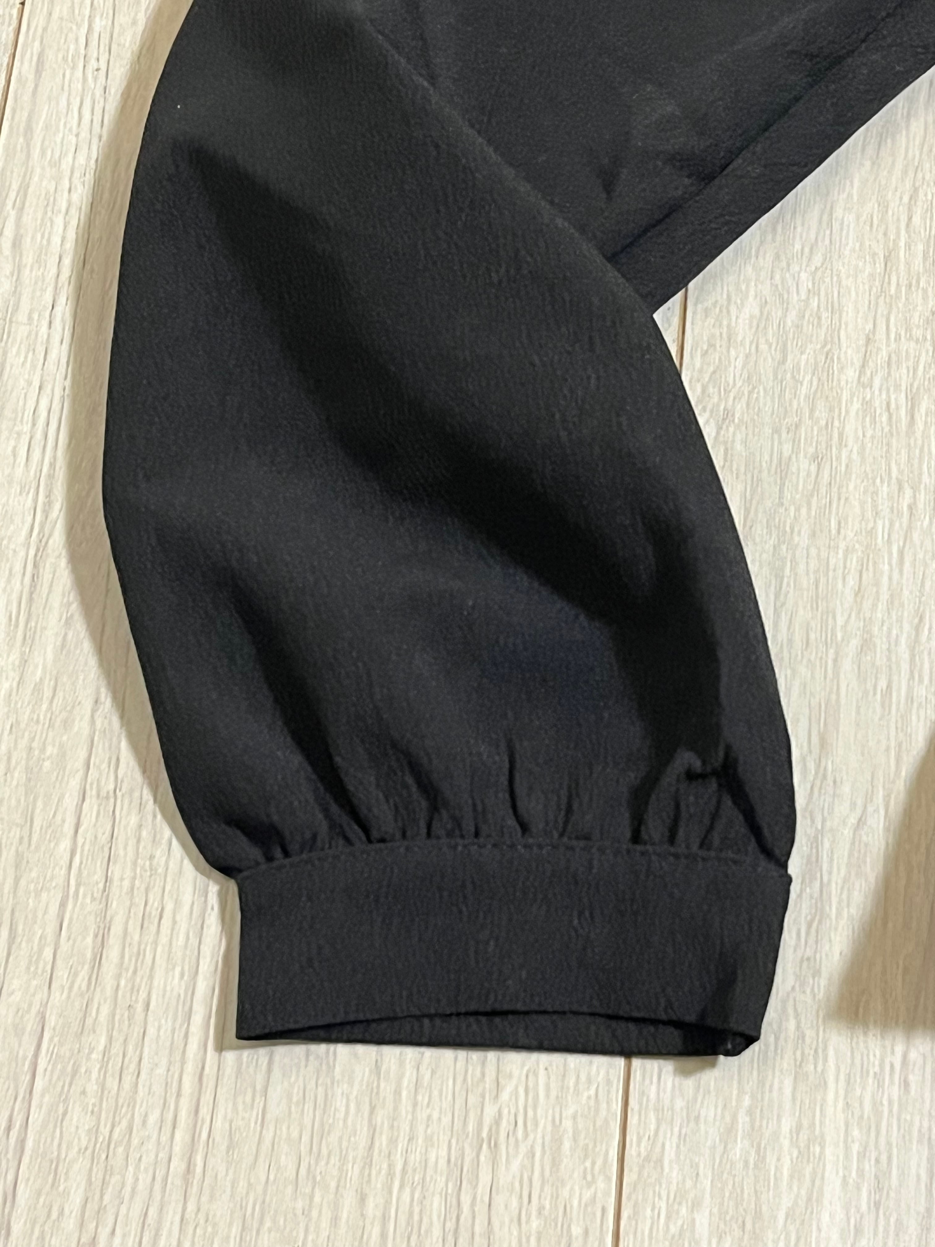 パンツは脚のラインを拾いすぎない絶妙なワイドシルエットで、
