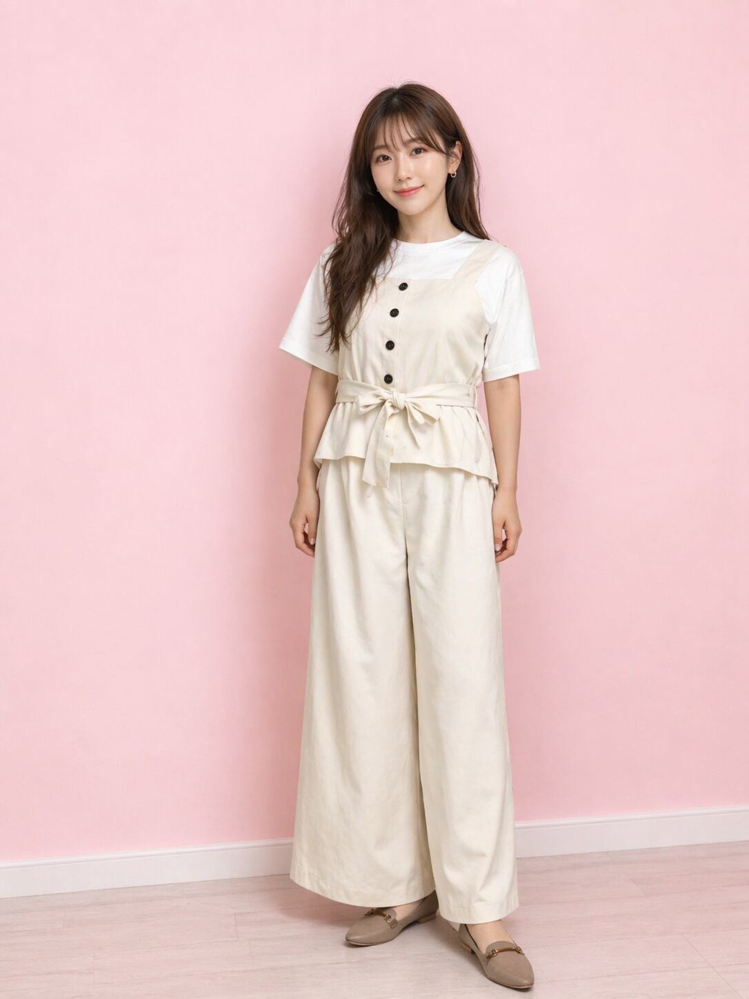 フラットシューズでも重たく見えず、日常使いにもぴったりです。
